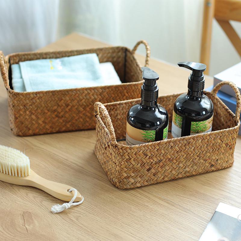 Японская плетеная из соломы корзина для хранения закусок, ТВ-аксессуаров, косметики и масок