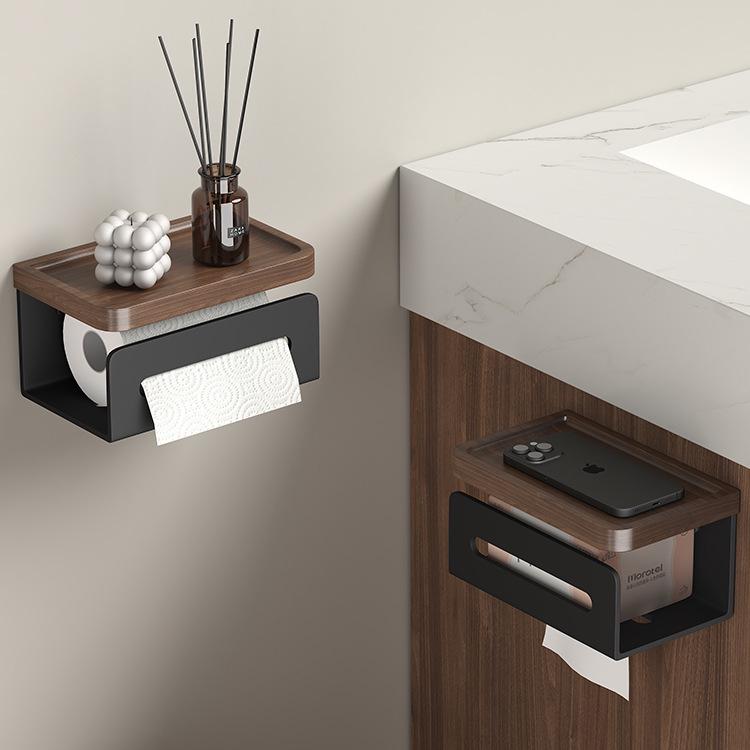 Самоклеящийся держатель для бумажных полотенец из черного ореха и настенный диспенсер для салфеток с подставкой для мобильного телефона