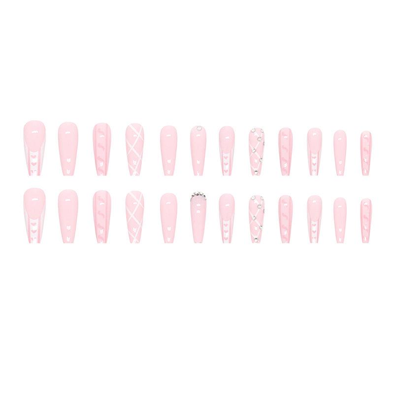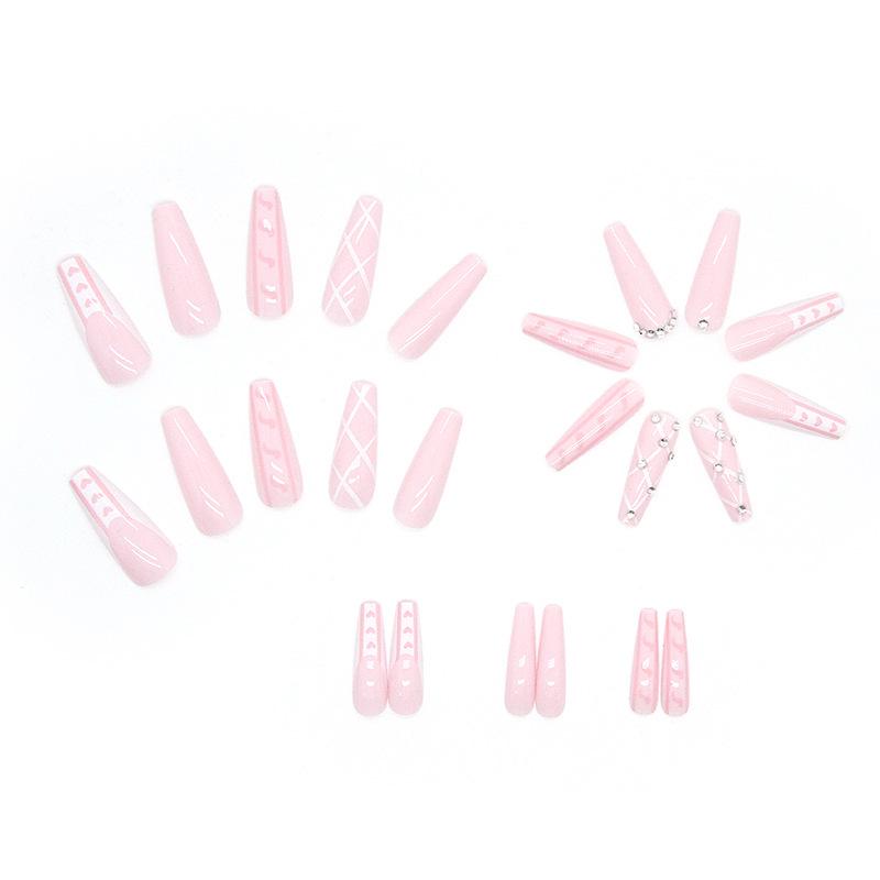 Box of 24 Long Pink Ballet Press-On Nails with Shiny Crushed Diamond Texture