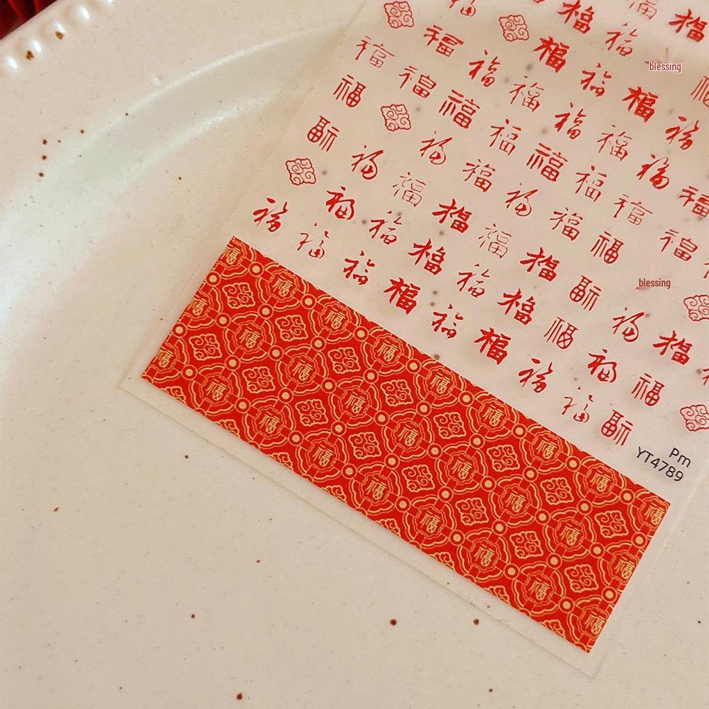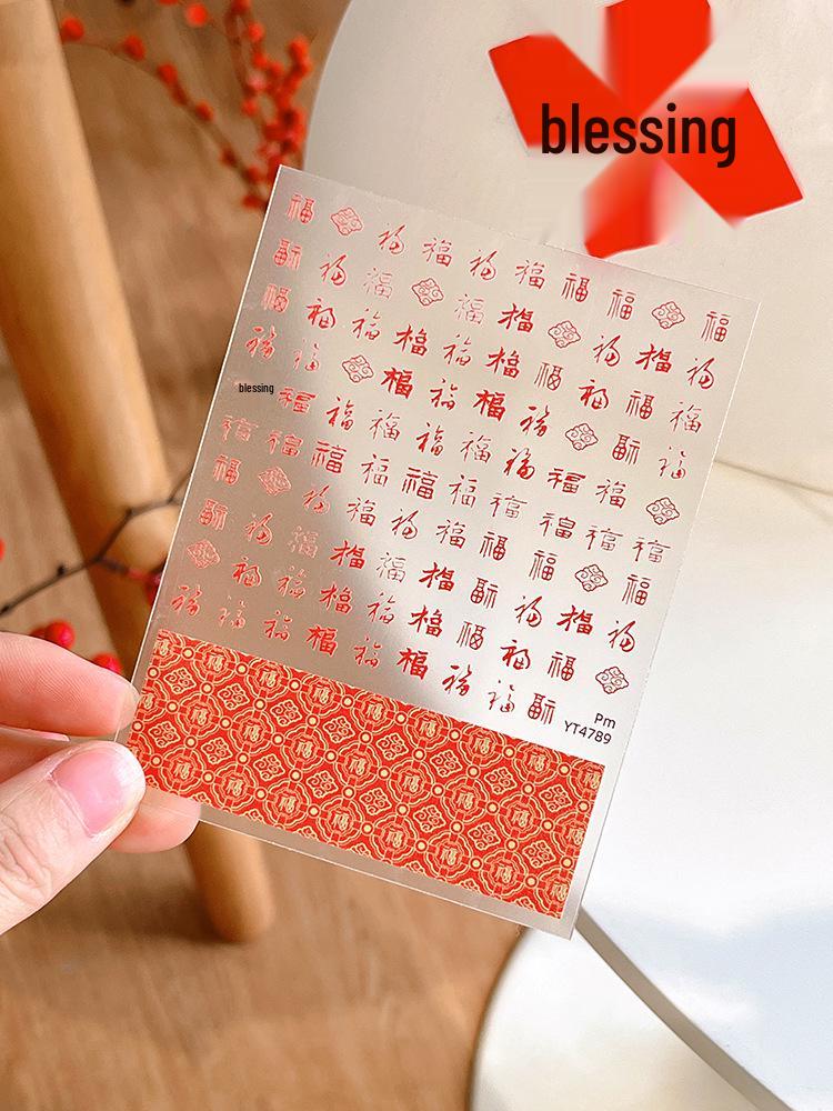 Наклейки для ногтей YITU с китайским иероглифом Fu и муравьями - Тонкие, прочные, самоклеящиеся украшения для ногтей (YT4789)