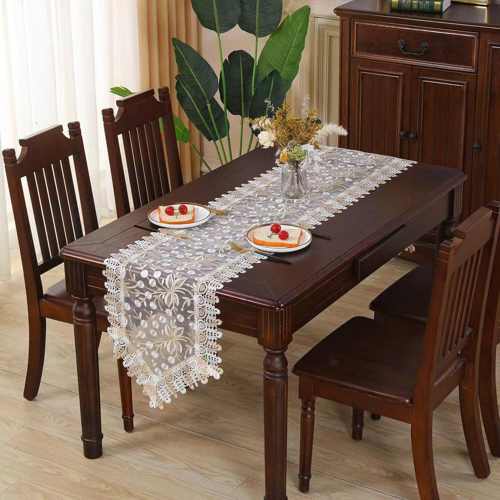 Европейское кружево, вышитая скатерть-дорожка и набор подставок