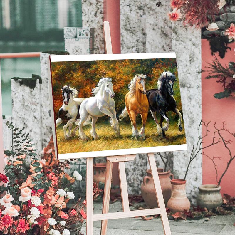 5D Цифровая картина маслом скачущих лошадей - Искусство для гостиной и спальни (Без рамки)