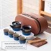 Элегантный портативный керамический чайный набор с деревянным подносом: 1 чайник и 4 чашки для приключений на открытом воздухе