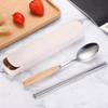 Набор столовых приборов из нержавеющей стали с деревянными ручками - Включает палочки для еды, вилку и ложку для студентов и путешествий на открытом воздухе.