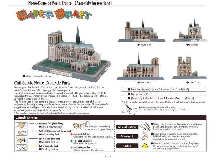 3D Сборная Модель Бумажное Ремесло Мир Исторических Зданий Дама (Собор Нотр-Дам)