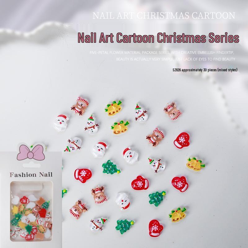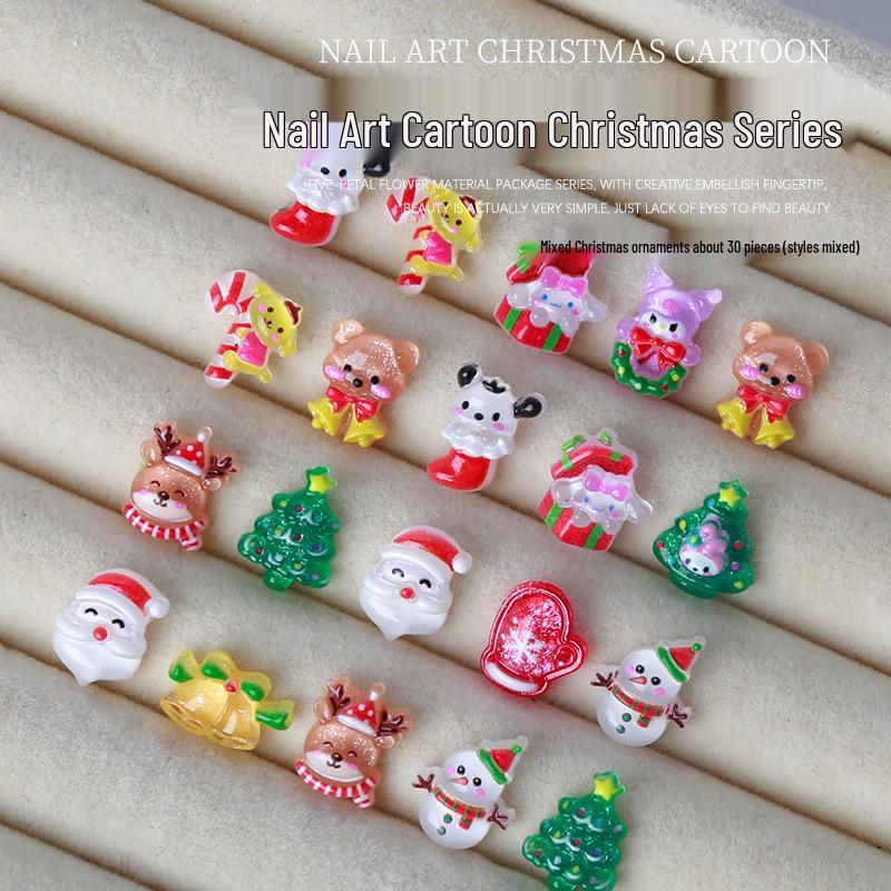 Набор для рождественского нейл-арта из 30 предметов: Милые стразы из смолы с дизайном дерева и Санты
