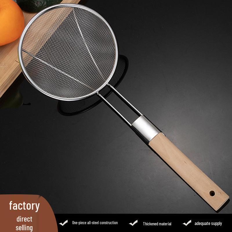Сверхтонкий скиммер из нержавеющей стали с деревянной ручкой для бытового и коммерческого использования