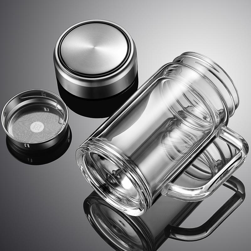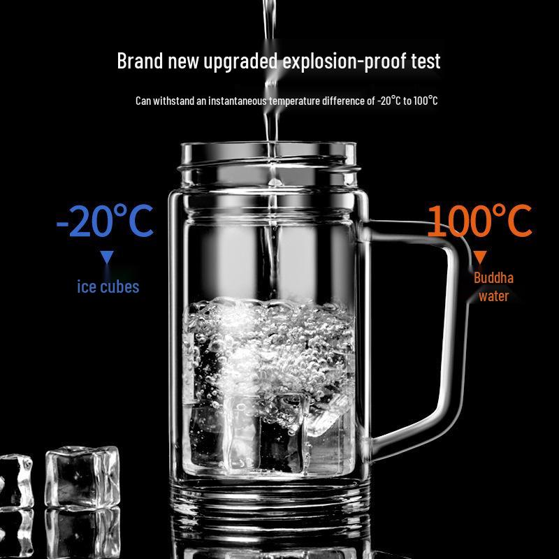 Мужская двухслойная стеклянная чашка с ручкой - Большая вместимость для офисного и домашнего использования