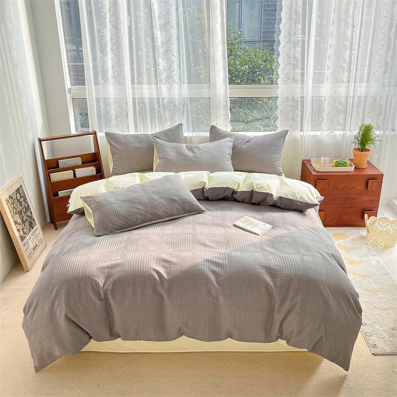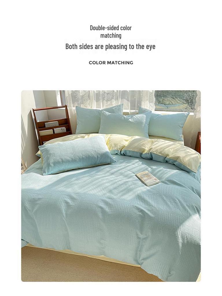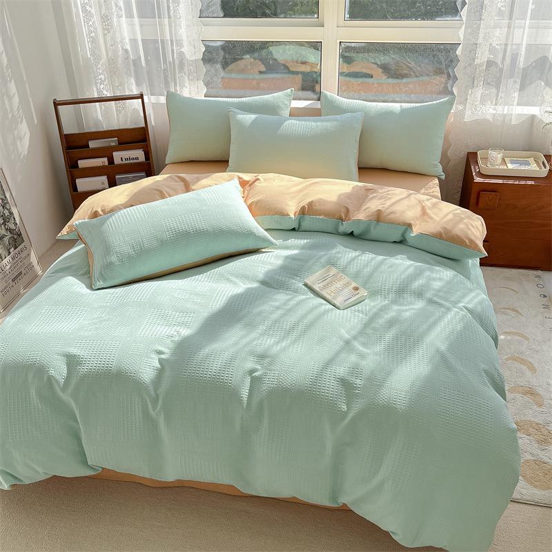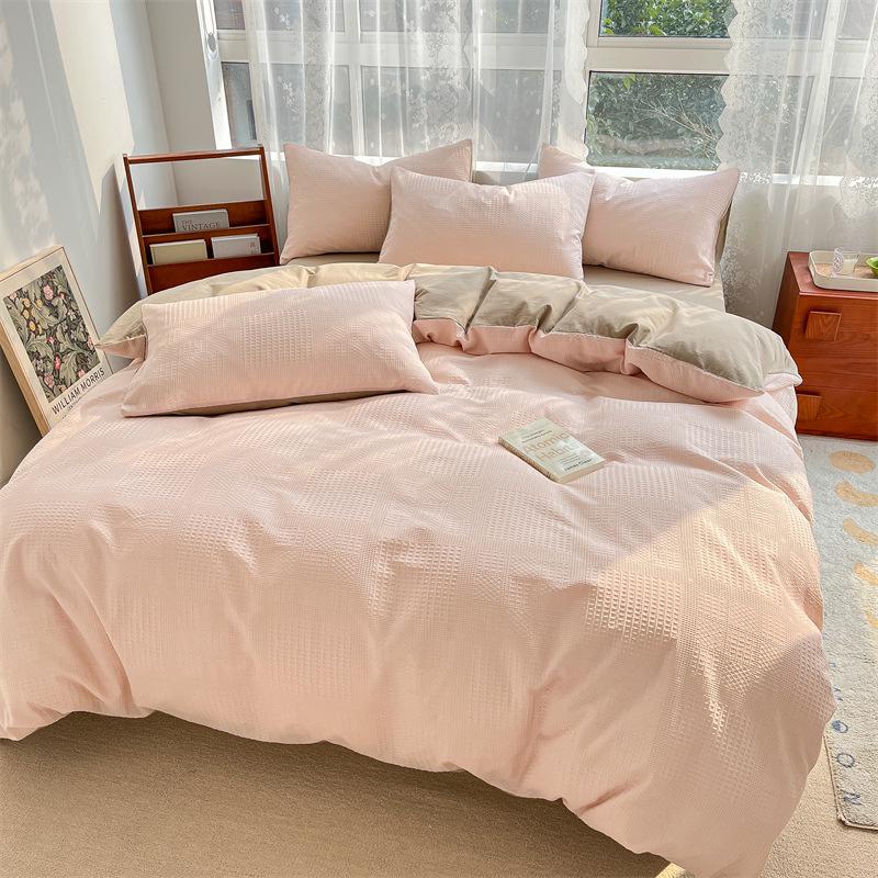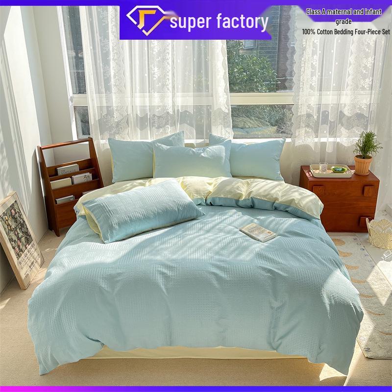 2024 A-Class Pure Cotton Bedding Set: Solid Color Duvet Cover & Bed Sheet