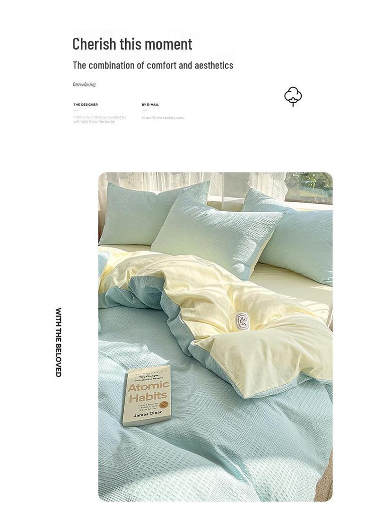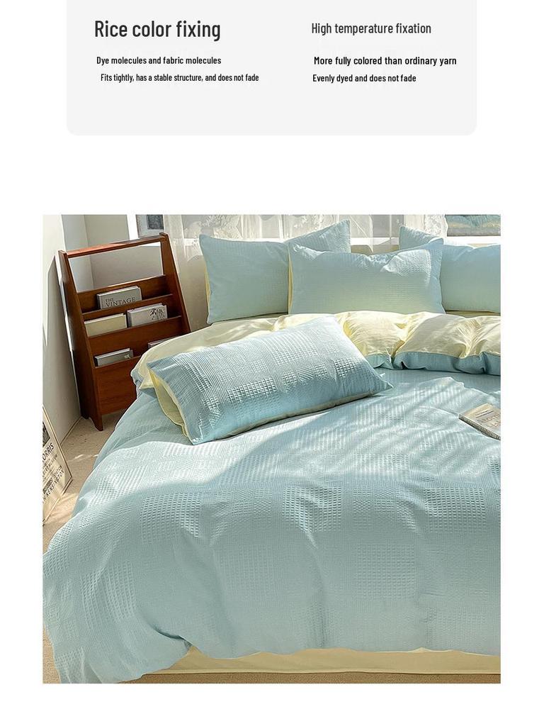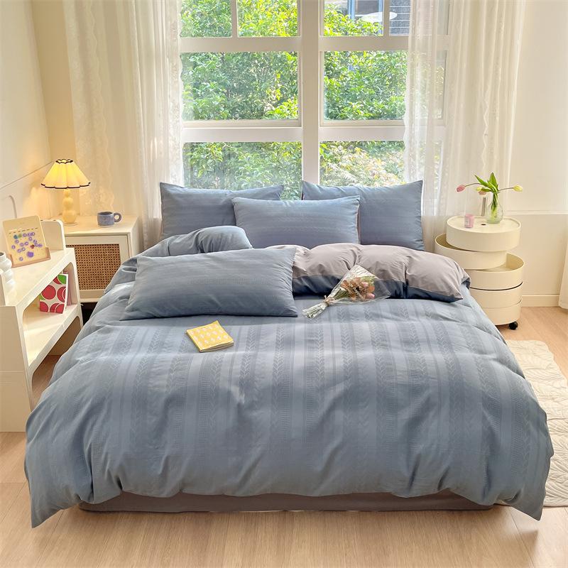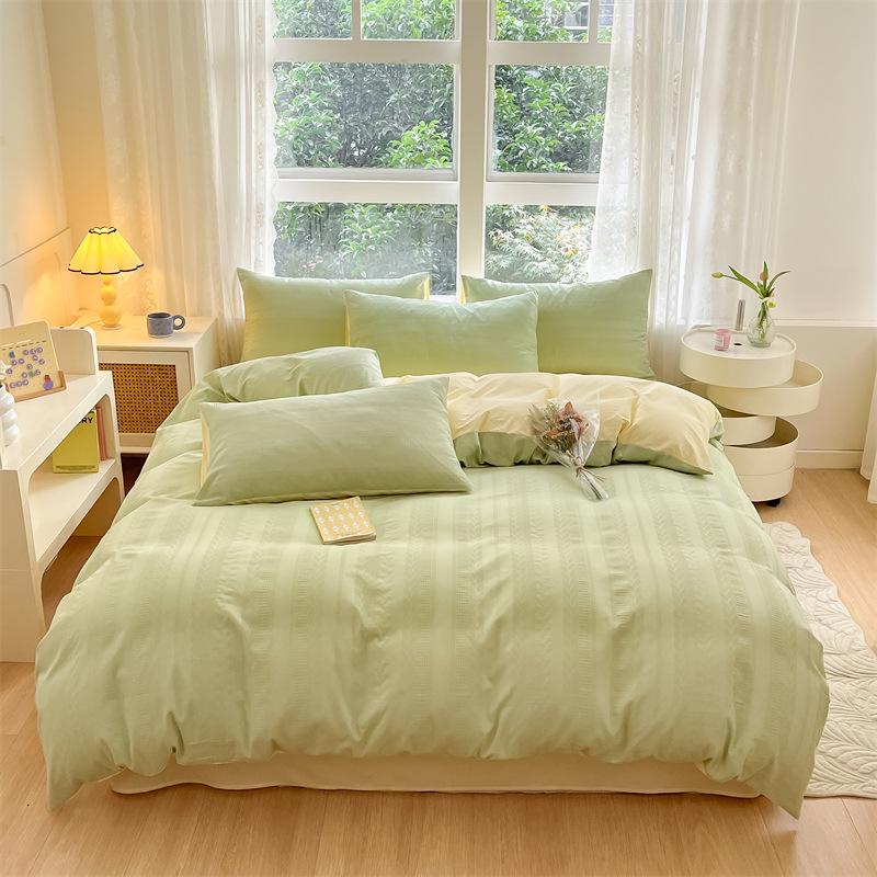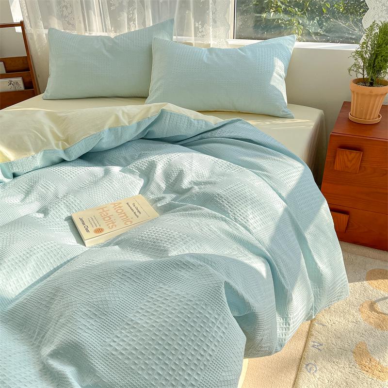 2024 A-Class Pure Cotton Bedding Set: Solid Color Duvet Cover & Bed Sheet
