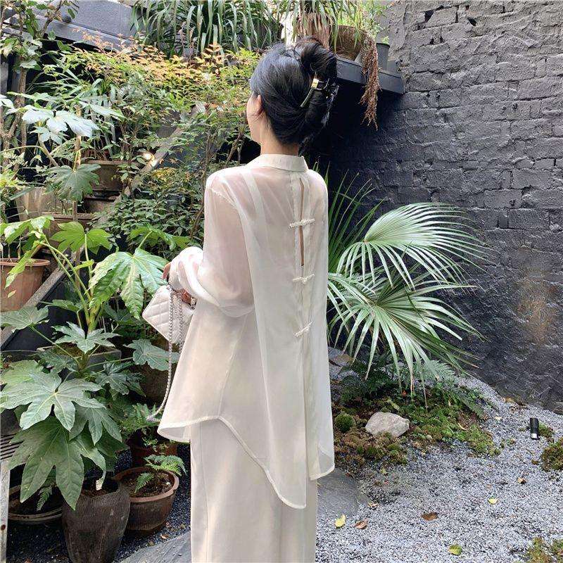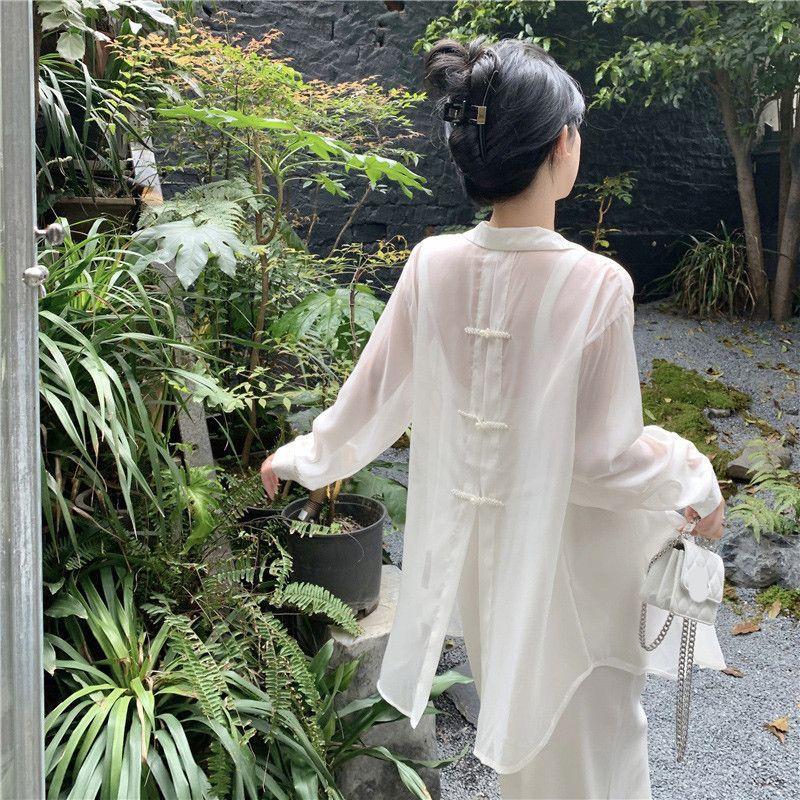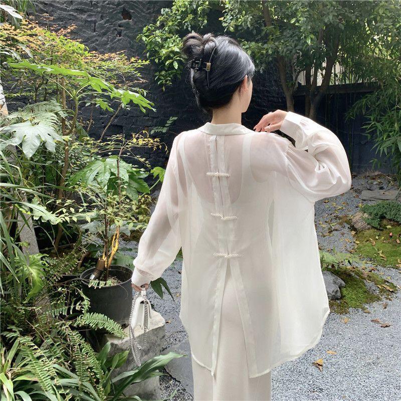 Солнцезащитный крем-рубашка, женская летняя тонкая новая кардиган с длинными рукавами в китайском стиле, свободный модный шифоновый топ