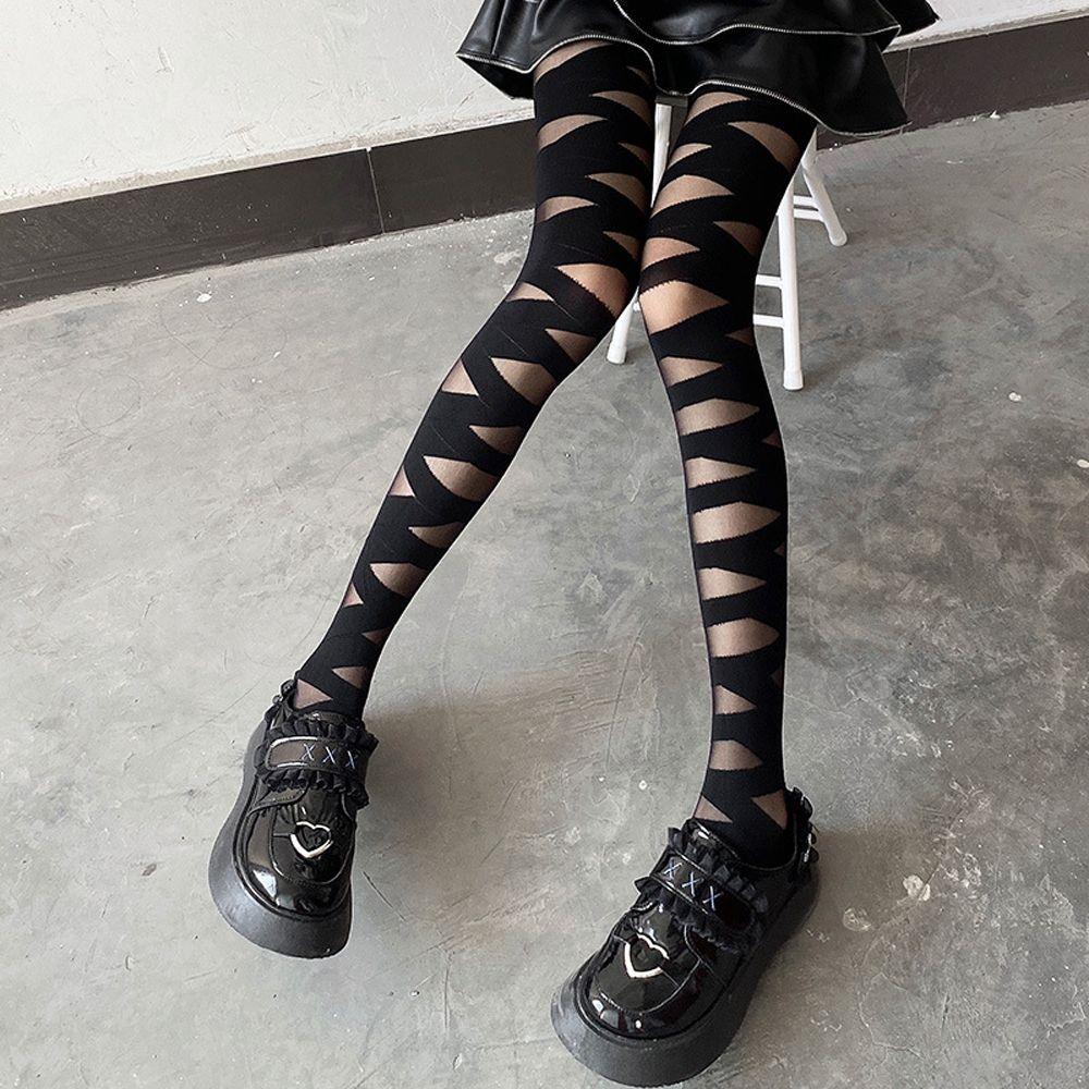 Дышащие Прозрачные Стеклянные Шелковые JK Лолита Женские Колготки Корейские Чулки Сетка Колготки Полоска