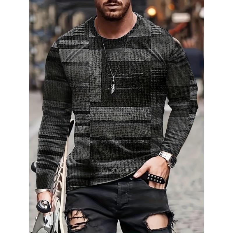 Мужская разноцветная футболка с круглым вырезом и длинными рукавами с узором из неправильной сетки