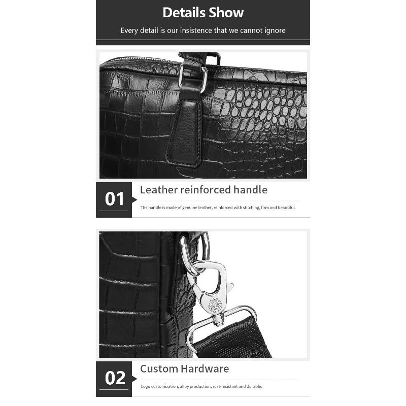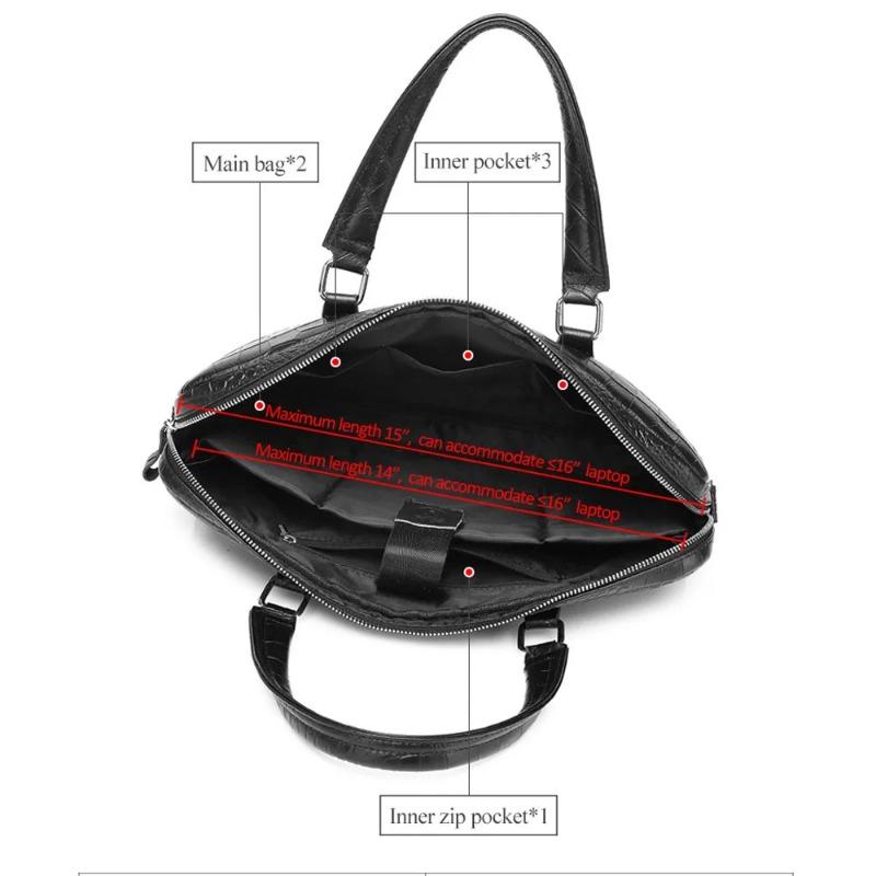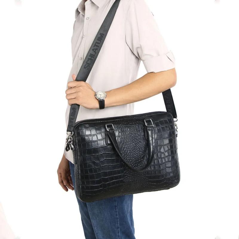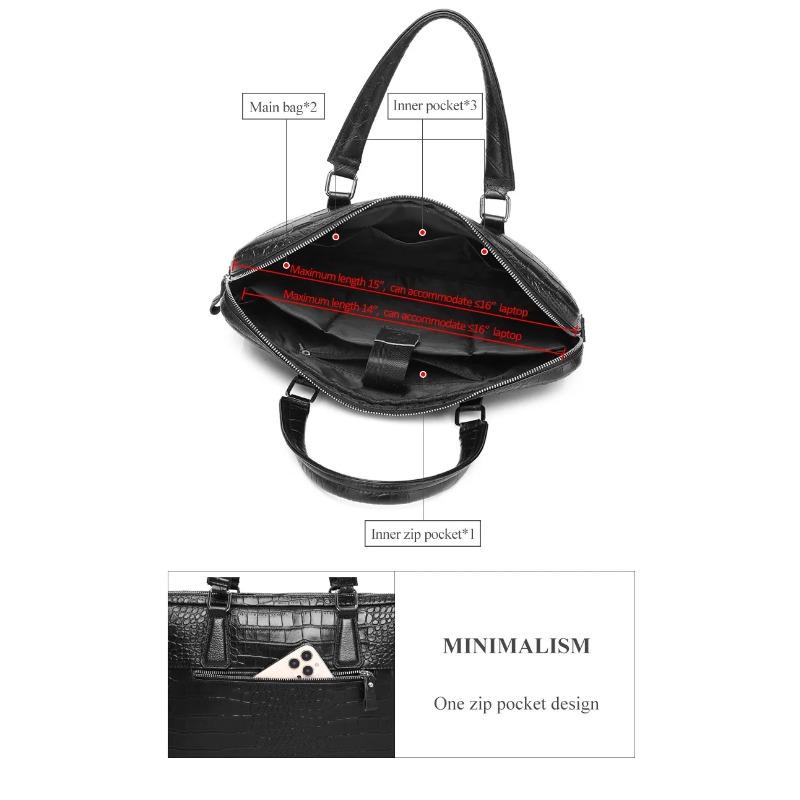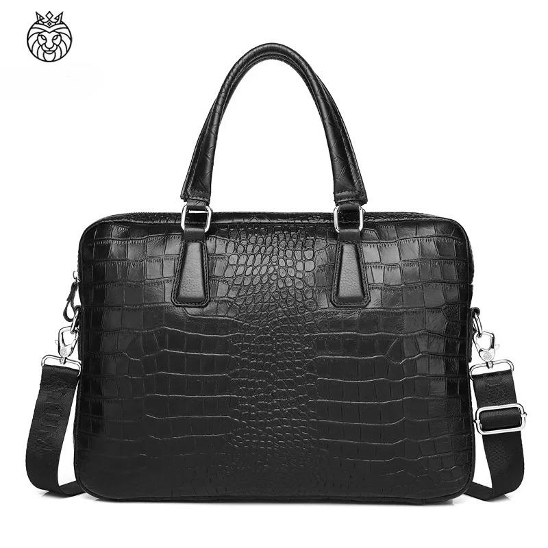Тонкий мужской портфель из коровьей кожи с тиснением под крокодила вмещает 16-дюймовый компьютер