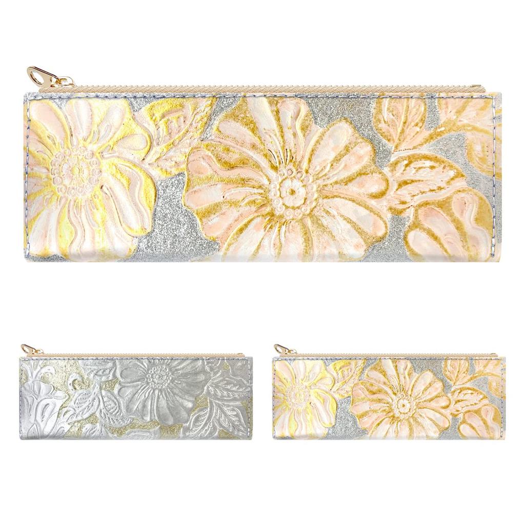 Ручка из натуральной кожи, ручка с блестками, карандашная ручка, пишущая, с тисненым цветочным узором, серебристый блестящий корпус, цветок, футляр, держатель, канцелярские товары, инструменты, узор, футляр,