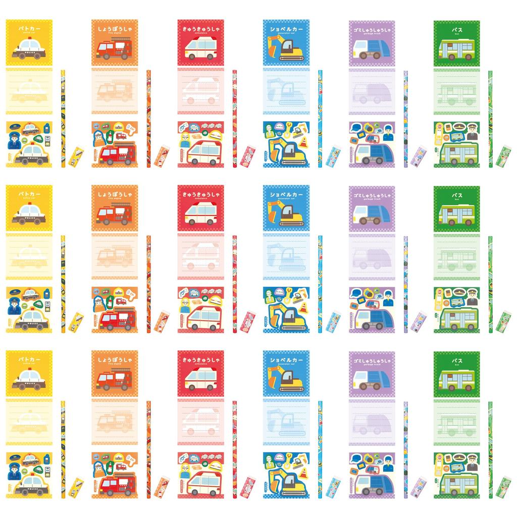 Канцелярский набор с транспортом 6 видов x 3 штуки, всего 18 штук на день рождения, 4 штуки в офис, пожарная машина, полицейская машина, мусоровоз по 4 штуки каждого вида, (малая вместимость,