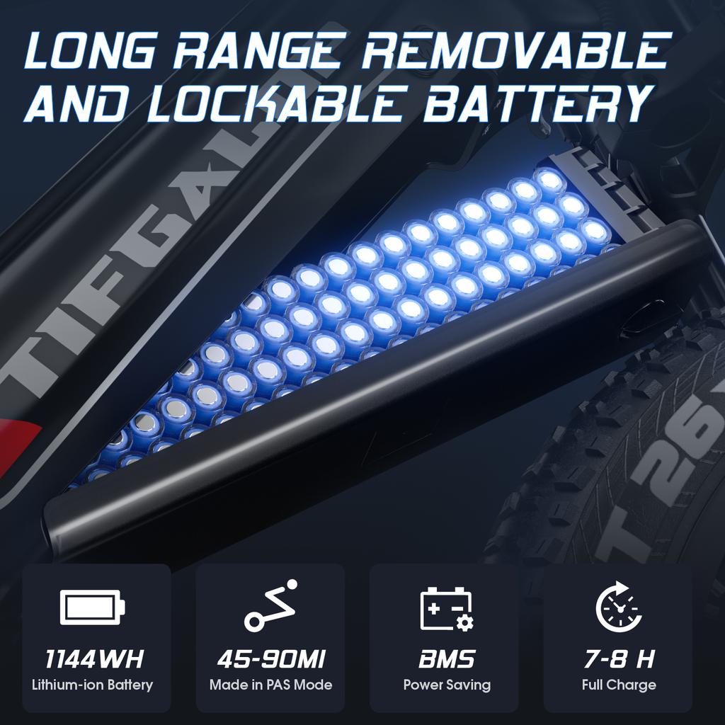 Электровелосипед TIFGALOP ES28 1000 Вт Мотор 48 В 18 Ач Максимальная скорость 32 миль/ч Взрослый электровелосипед 26'' Толстые шины Горный Внедорожный Электровелосипед
