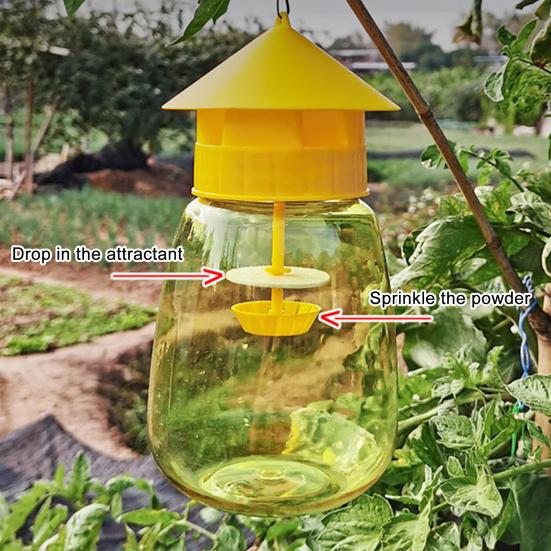 Универсальная привлекательность: Разработано для отлова плодовых мушек, привлекаемых различными фруктами и овощами, такими как гуава, карамбола, манго, люффа и помидоры, обеспечивая всесторонний контроль плодовых мушек в садах или на открытых пространствах.