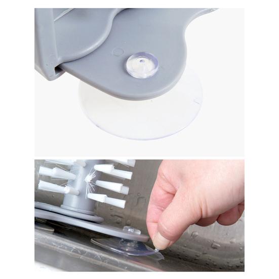 Эффективное удаление грязи: Поверните чашку и щетку по часовой стрелке, чтобы быстро удалить грязь из труднодоступных углов.. Оборудован 3 надежными присосками для универсального крепления к стенам, столам и раковинам.