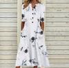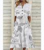 Дизайн: Платье с V-образным вырезом и рукавами средней длины, с застежкой на пуговицы спереди и боковыми карманами, сочетающее в себе элегантность и удобство.