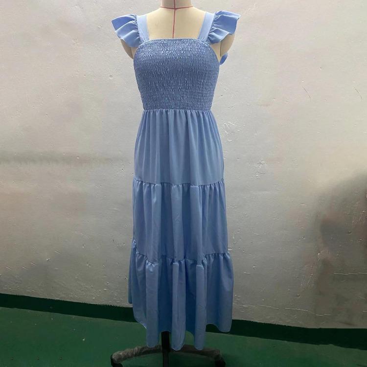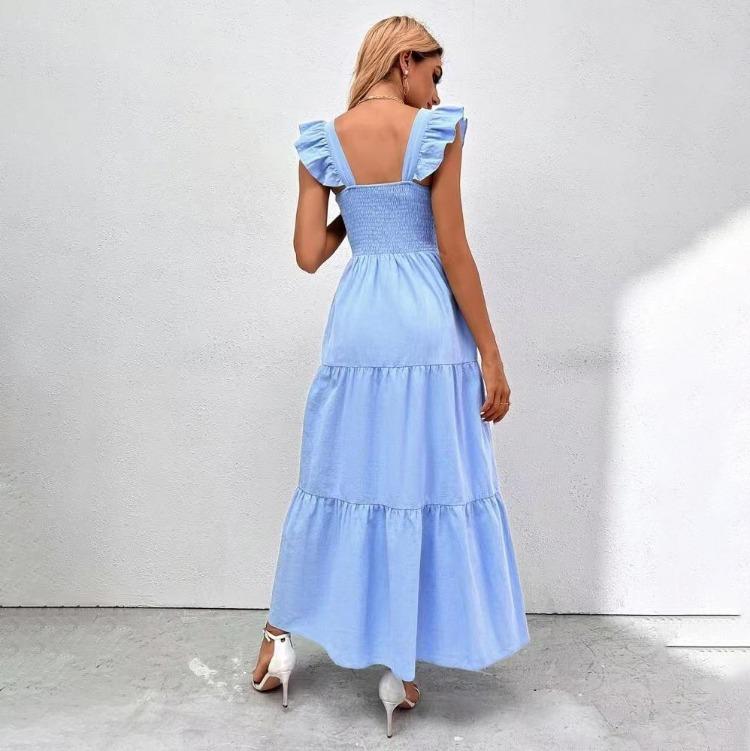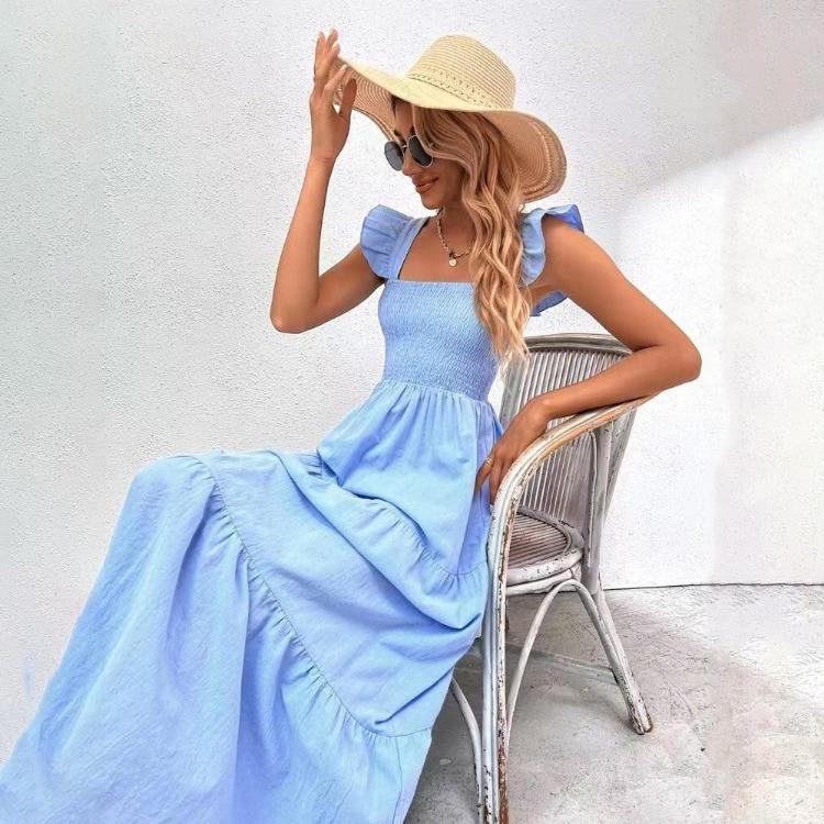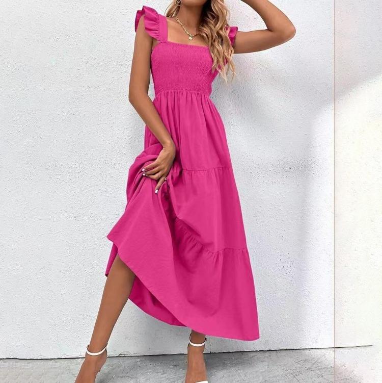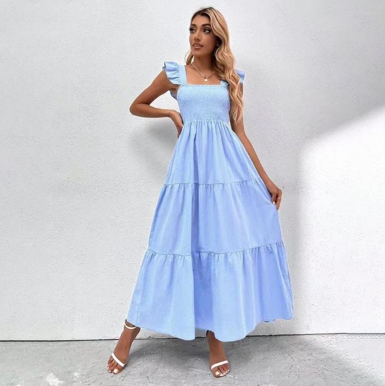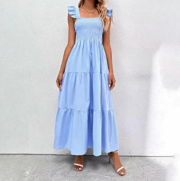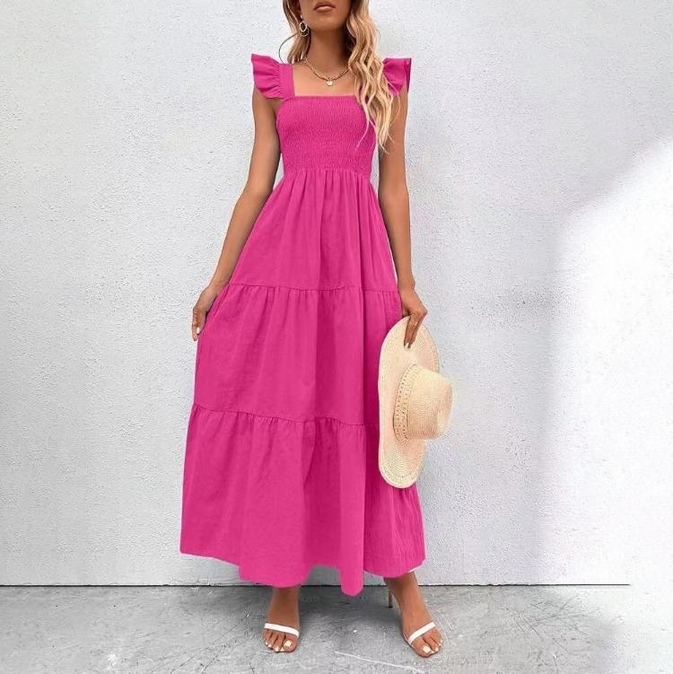 Женское осенне-зимнее повседневное платье без рукавов с завышенной талией А-силуэта однотонное с квадратным вырезом длиной до щиколотки