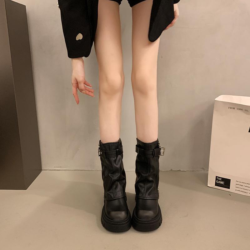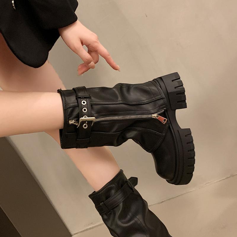 Зимние женские байкерские ботинки, модные женские элегантные ботинки на платформе с пряжкой на платформе, короткие ботильоны на плоской подошве, повседневные женские рыцарские ботинки