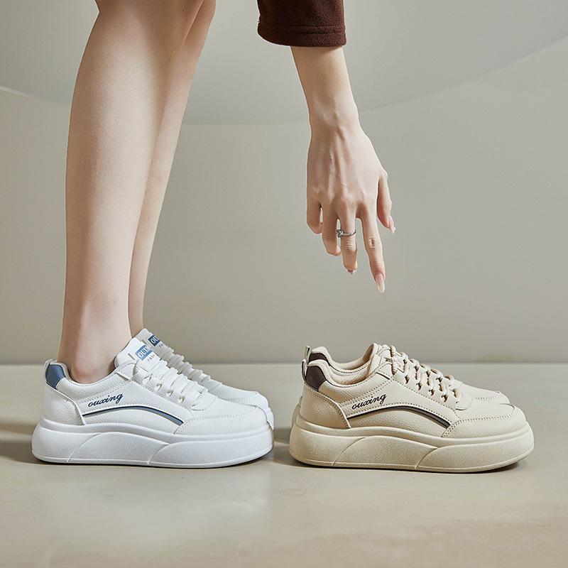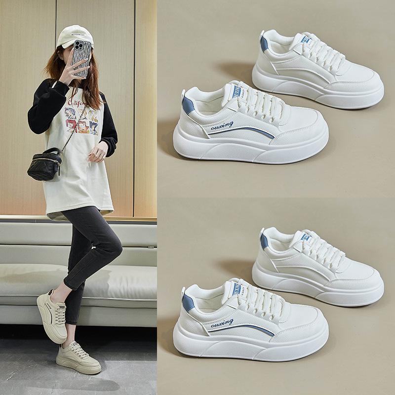 Весенние белые туфли, новый стиль студенческих женских кроссовок с толстой подошвой, спортивная обувь с высокой посадкой, повседневная уличная фотография