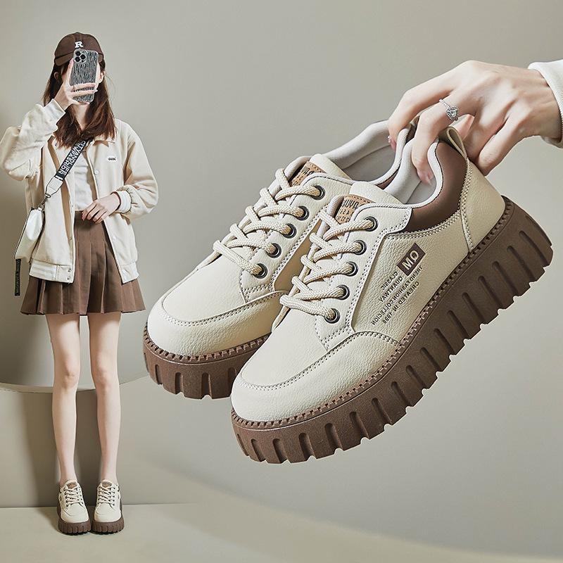 Весенние белые туфли новые спортивные беговые женские студенческие толстые подошвы увеличивающие рост повседневные туфли