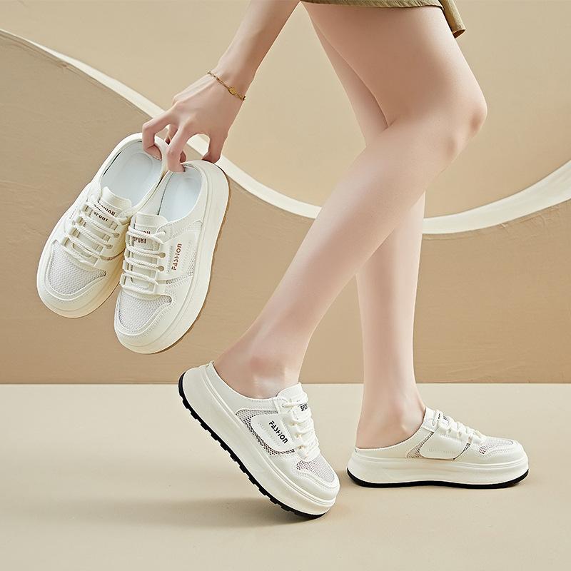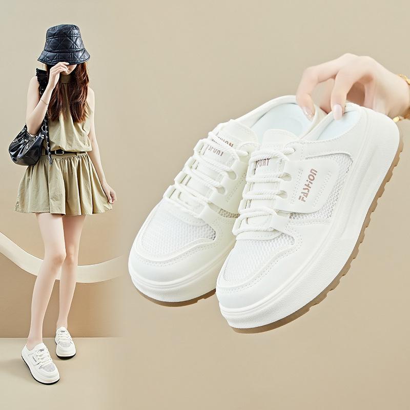 Летние сетчатые белые туфли, новый стиль для студенток, дышащие, увеличивающие рост, повседневные уличные туфли-клэпперы