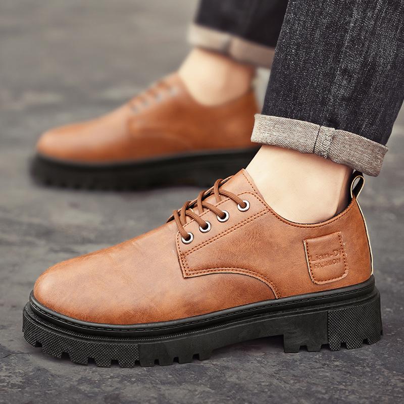 Новые мужские кожаные туфли в весенних модных тенденциях и универсальные мужские туфли в британском стиле с толстой подошвой и низким верхом. Повседневные туфли
