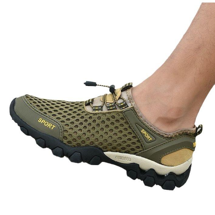 Летняя мужская обувь больших размеров Дышащая обувь для плавания для мужского спорта и отдыха Полая трендовая обувь в корейском стиле Сетка Шнуровка Круглый носок Мужская