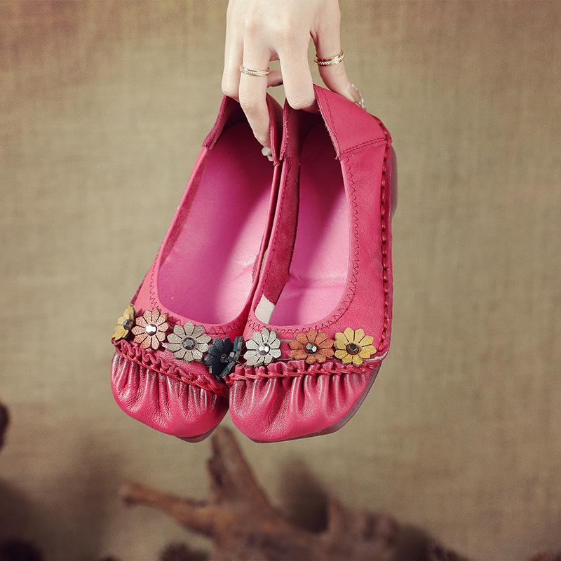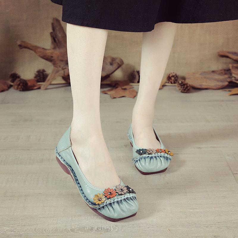 Верхний слой из коровьей кожи, повседневная женская обувь на плоской подошве, этнический стиль, женские одинарные туфли из натуральной кожи, удобные и дышащие