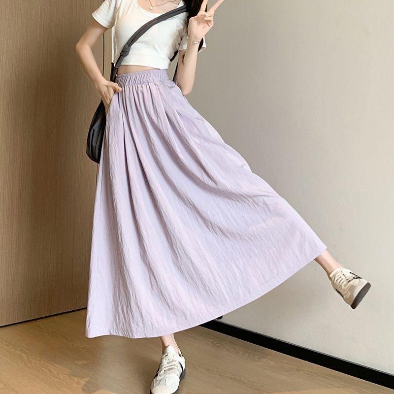 Женская летняя однотонная эластичная юбка-полусолнце с высокой талией, плиссированная, А-силуэта, женская премиальная элегантная повседневная длинная юбка — купить товар онлайн с бесплатной доставкой по всему миру!