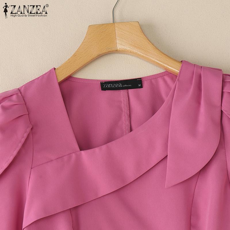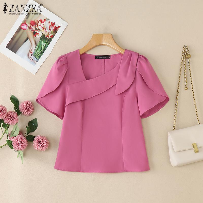 ZANZEA Женская летняя повседневная блузка с квадратным воротником и коротким рукавом