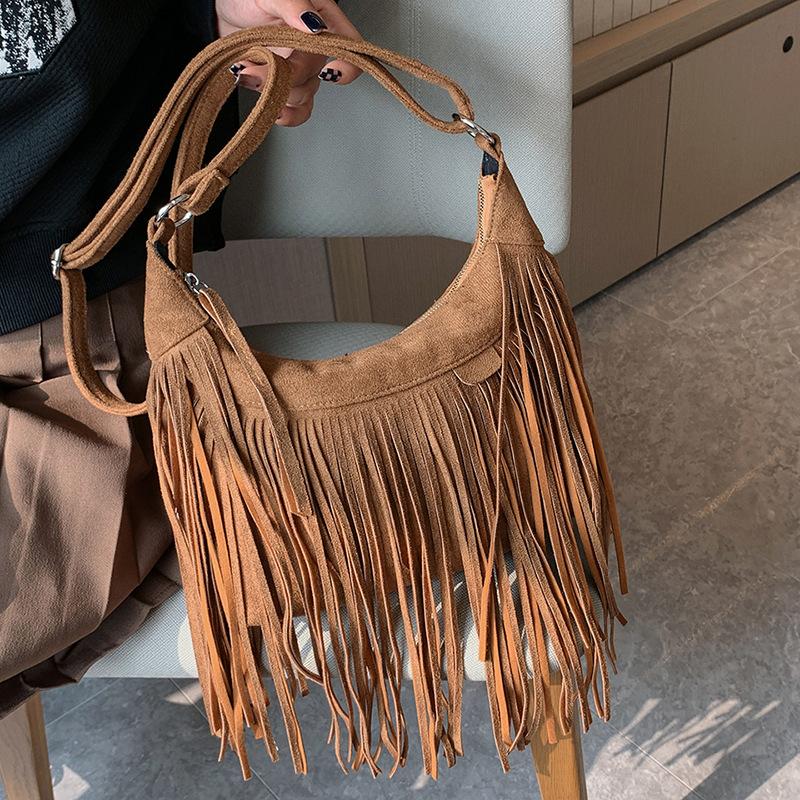 Сумка женская осенняя корейская версия 2025 модная с бахромой персонализированная инс матовая большой вместимости на плечо кроссбоди сумка-ведро из ПУ
