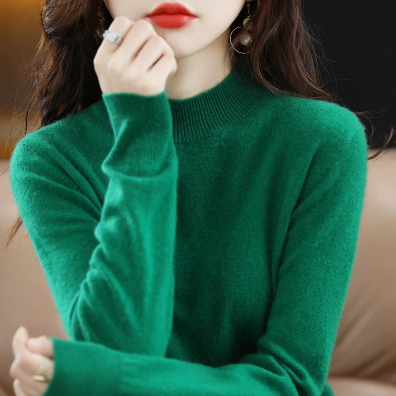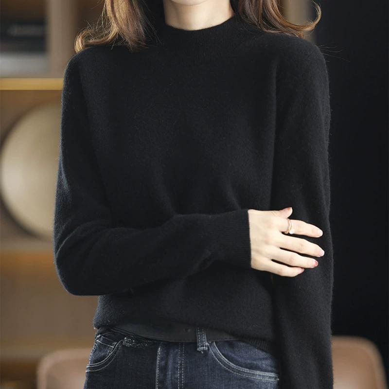 Модный универсальный вязаный свитер с полувысоким воротником для женщин, осенне-зимний пуловер короткого стиля, однотонный свободный базовый свитер