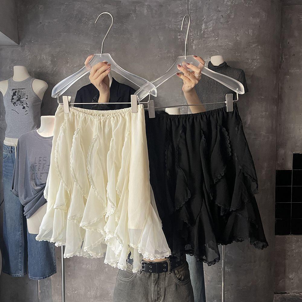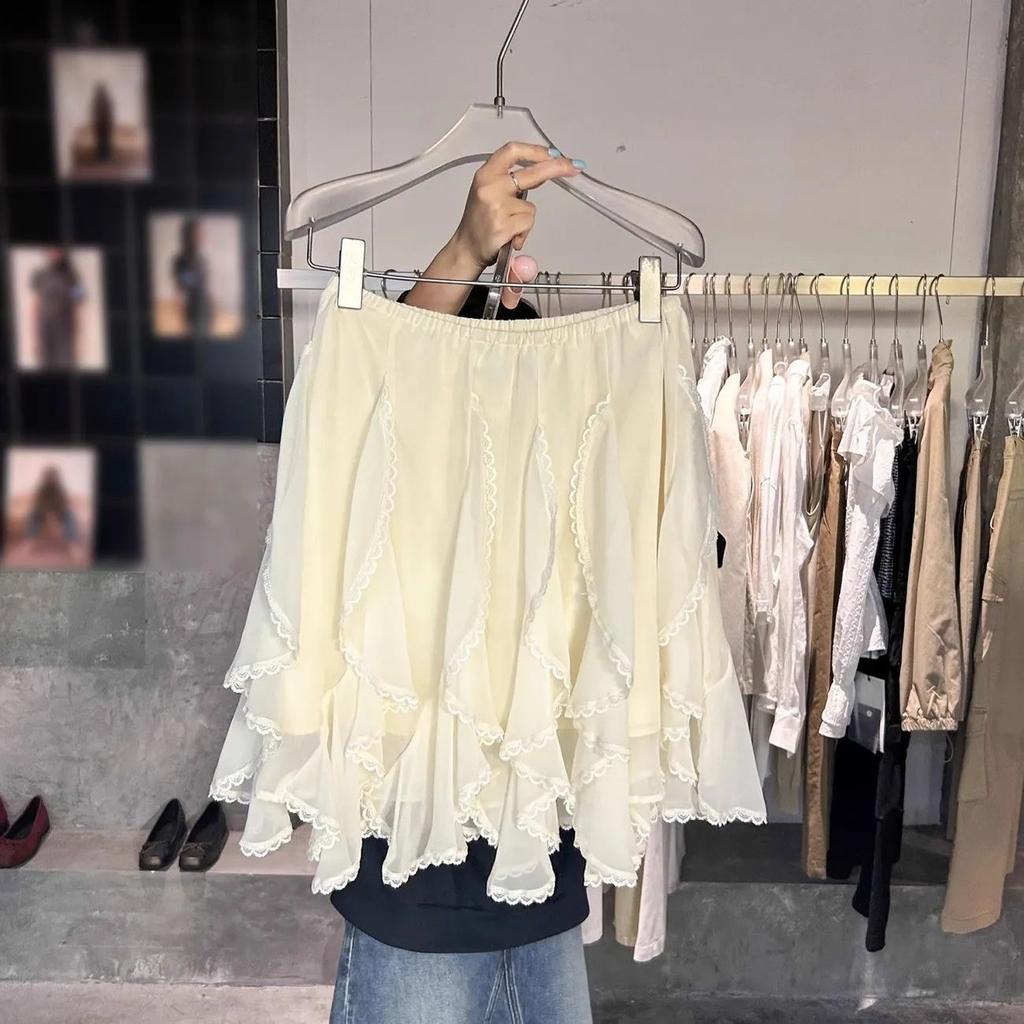 Юбки для женщин Винтажные повседневные юбки Однотонные кружевные асимметричные с высокой талией Сладкие мини юбки Весна Лето