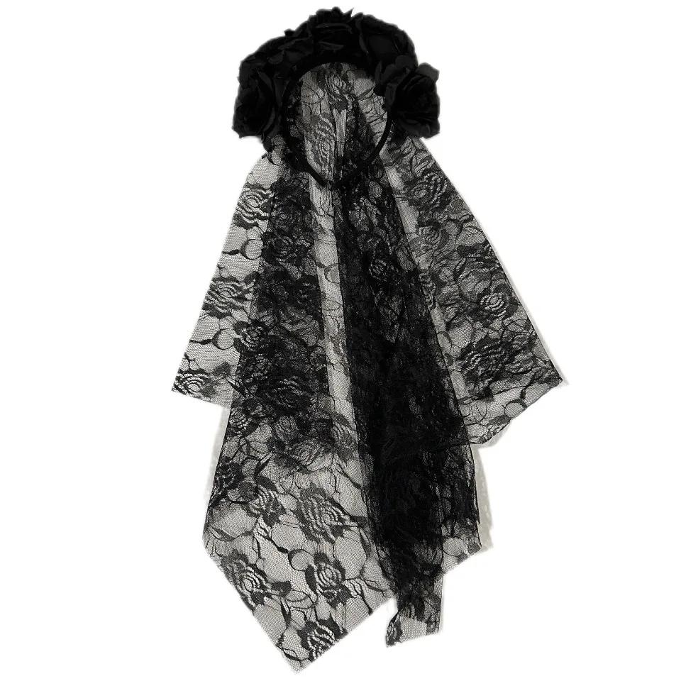 2 шт. Черная вуаль Хэллоуин Роза Цветок Повязка на голову Костюм Косплей Свадьба Мексиканская Роза Цветок Корона Повязка на голову День Мертвых Вечеринка