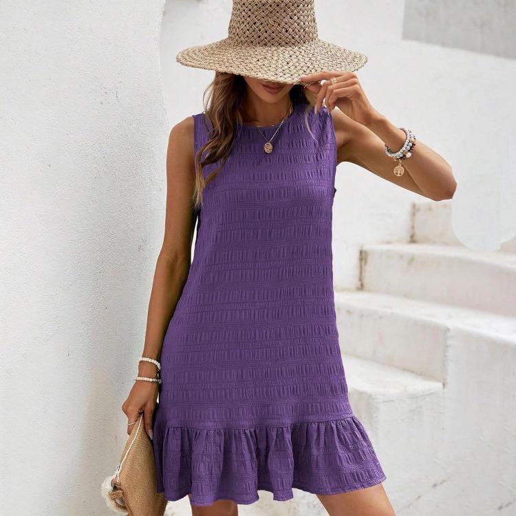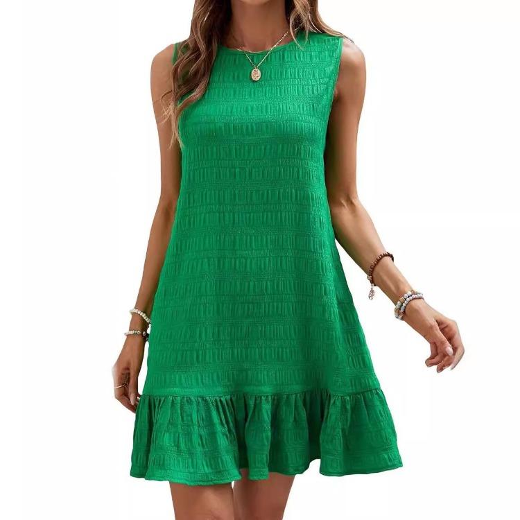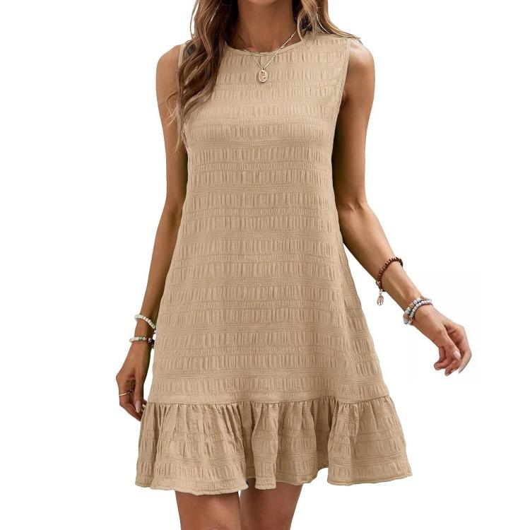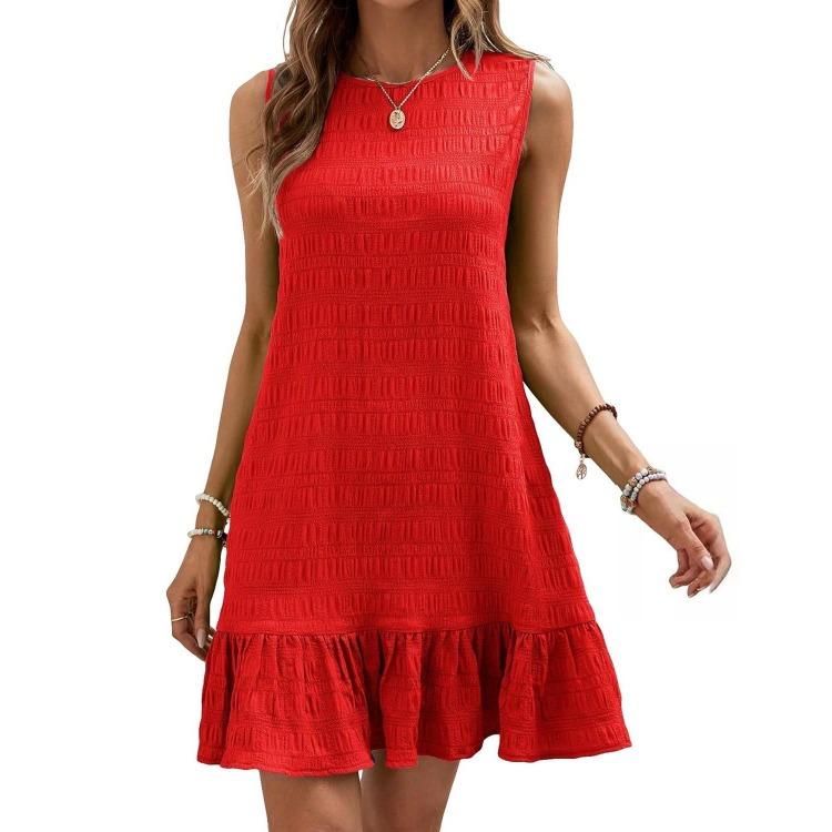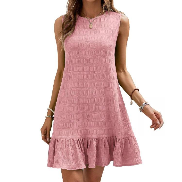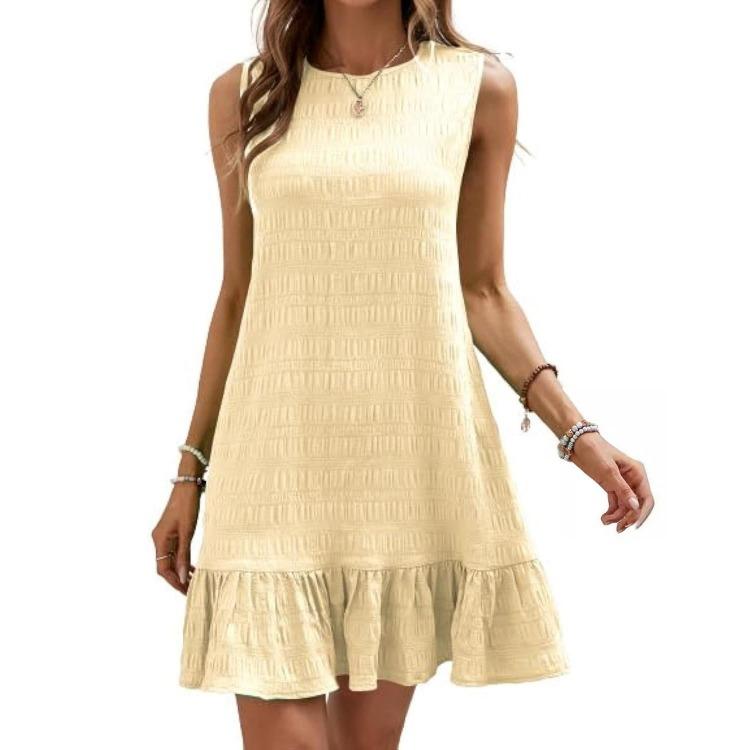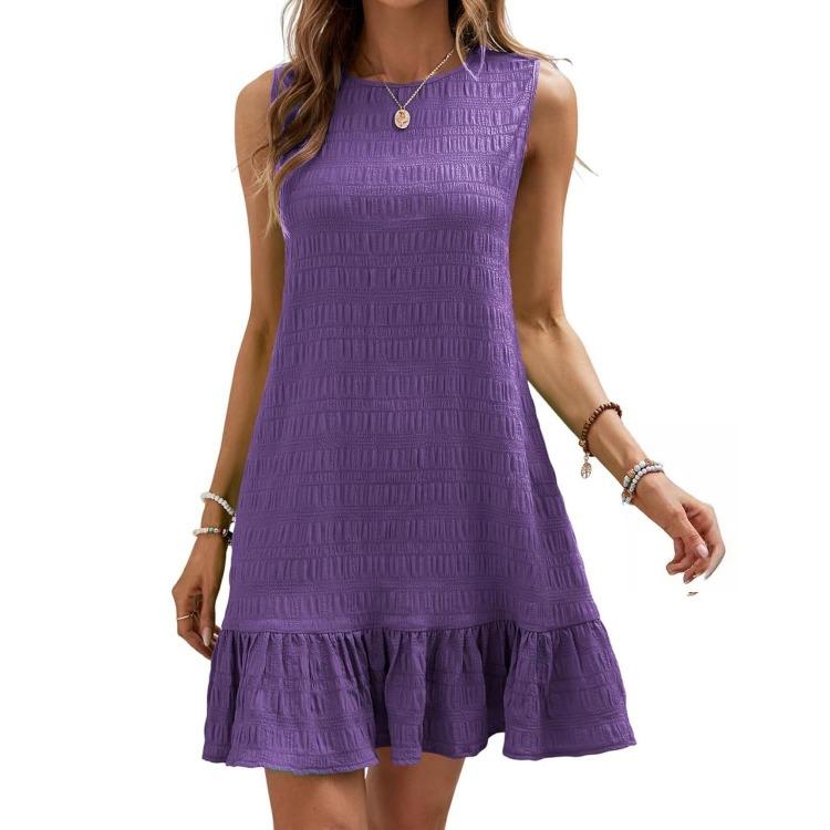 Летнее женское мини-платье без рукавов с завышенной талией А-силуэта, повседневное однотонное плиссированное, весеннее