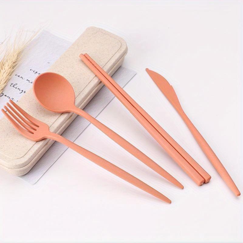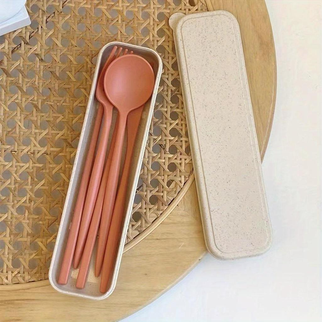4 шт./компл. столовые приборы, ложка из пшеничной соломы, вилка, палочки для еды с коробкой, студенческая посуда, портативная посуда для путешествий, кухонные аксессуары