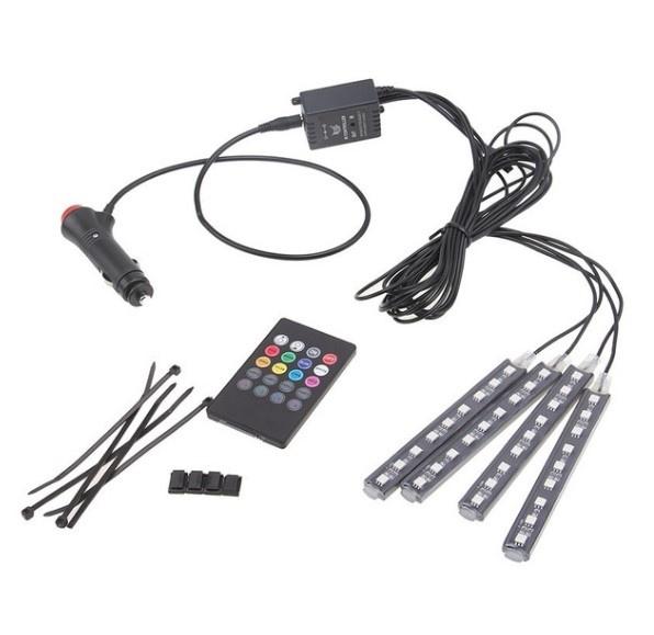 4x 9 светодиодных RGB-ламп для салона автомобиля, декоративная подсветка для ног с зарядным устройством USB