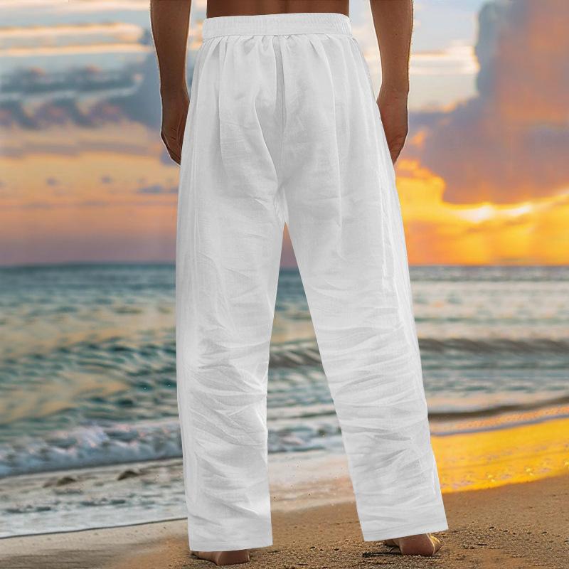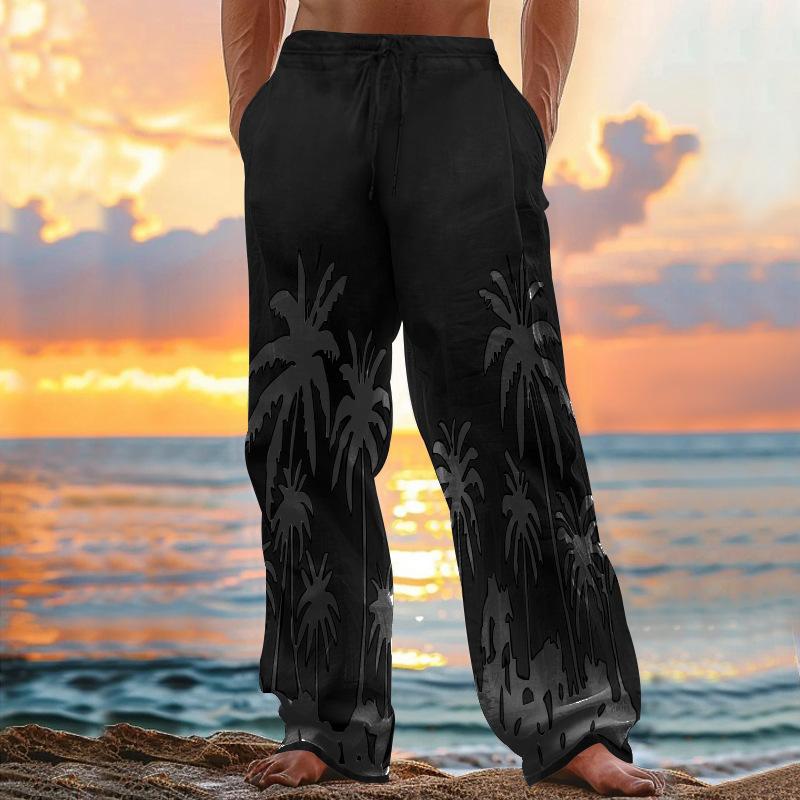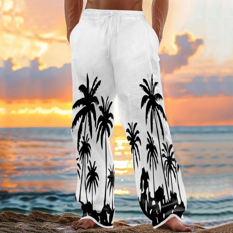 Новые пляжные мужские повседневные хлопково-льняные свободные брюки с принтом