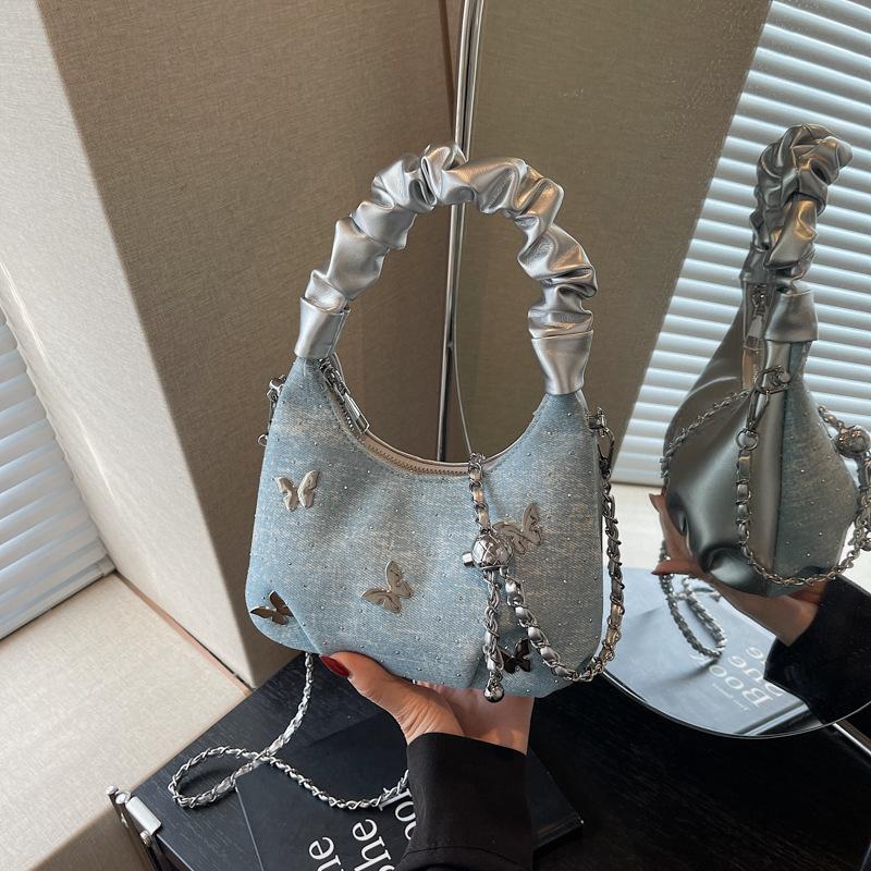 Популярная сумка этого года лето 2025 новая корейская версия модная плиссированная сумка-тоут женская универсальная джинсовая сумка-пельмень — купить товар онлайн с бесплатной доставкой по всему миру!