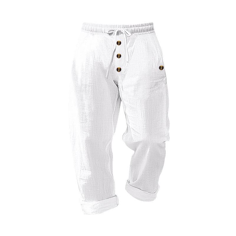 Модные мужские однотонные хлопково-льняные свободные брюки на кулиске с пуговицами, повседневные