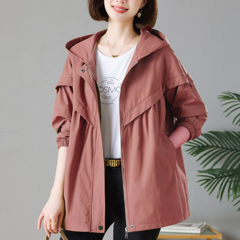 Женский ветрозащитный плащ Корейский повседневный универсальный Большой размер Свободная верхняя одежда С капюшоном Средней длины Куртка Весна Осень Женское пальто