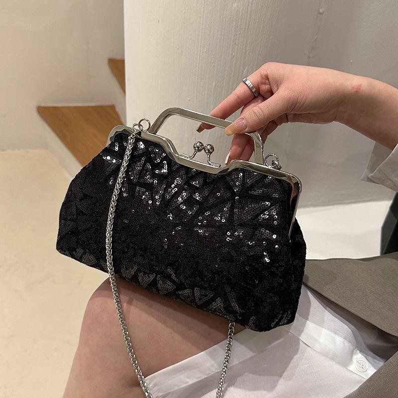 Сумка новая 2025 европейская и американская мода пайетки красочная портативная вечерняя сумка инс женская ретро сумка-клип ракушка