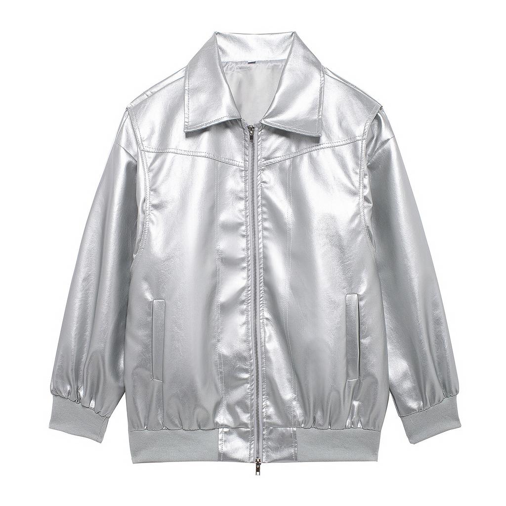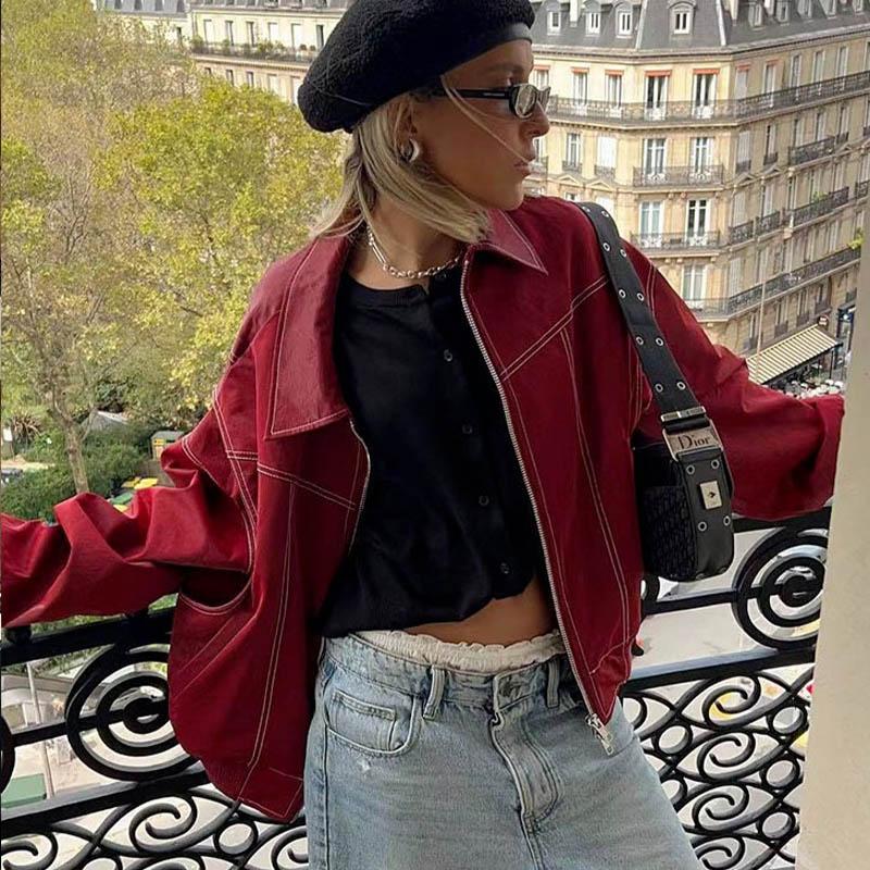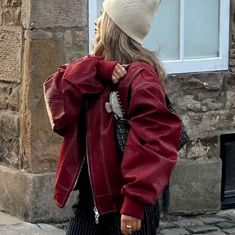 VAYLA Женские кожаные куртки-бомберы на молнии, пальто, контрастная строчка, лацкан, длинный рукав, куртка, мотоциклетная верхняя одежда, топы