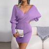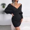 Шерстяное платье-запа́х Сексуальный V-образный вырез с перекрестом Рукав «летучая мышь» Однотонное Зима Осень Бедра — купить товар онлайн с бесплатной доставкой до всему миру!