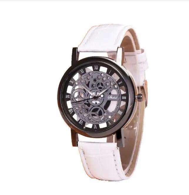 Модные деловые часы-скелетоны для мужчин с гравировкой и полыми часами Reloj Hombre Dress кварцевые наручные часы с кожаным ремешком для женщин