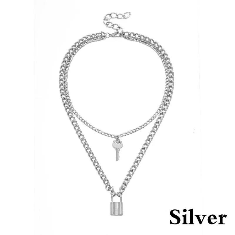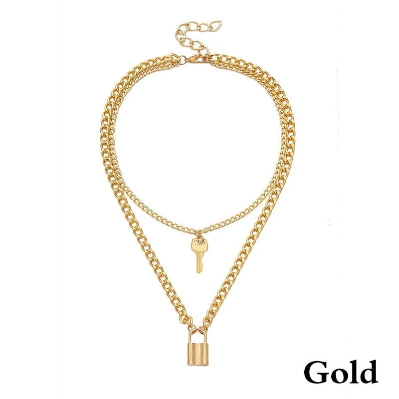 Женская мода Кулон-замок с ключом Золотой/Серебряный Ожерелье-замок Многослойная цепь Панк Металлический замок Панк-украшения